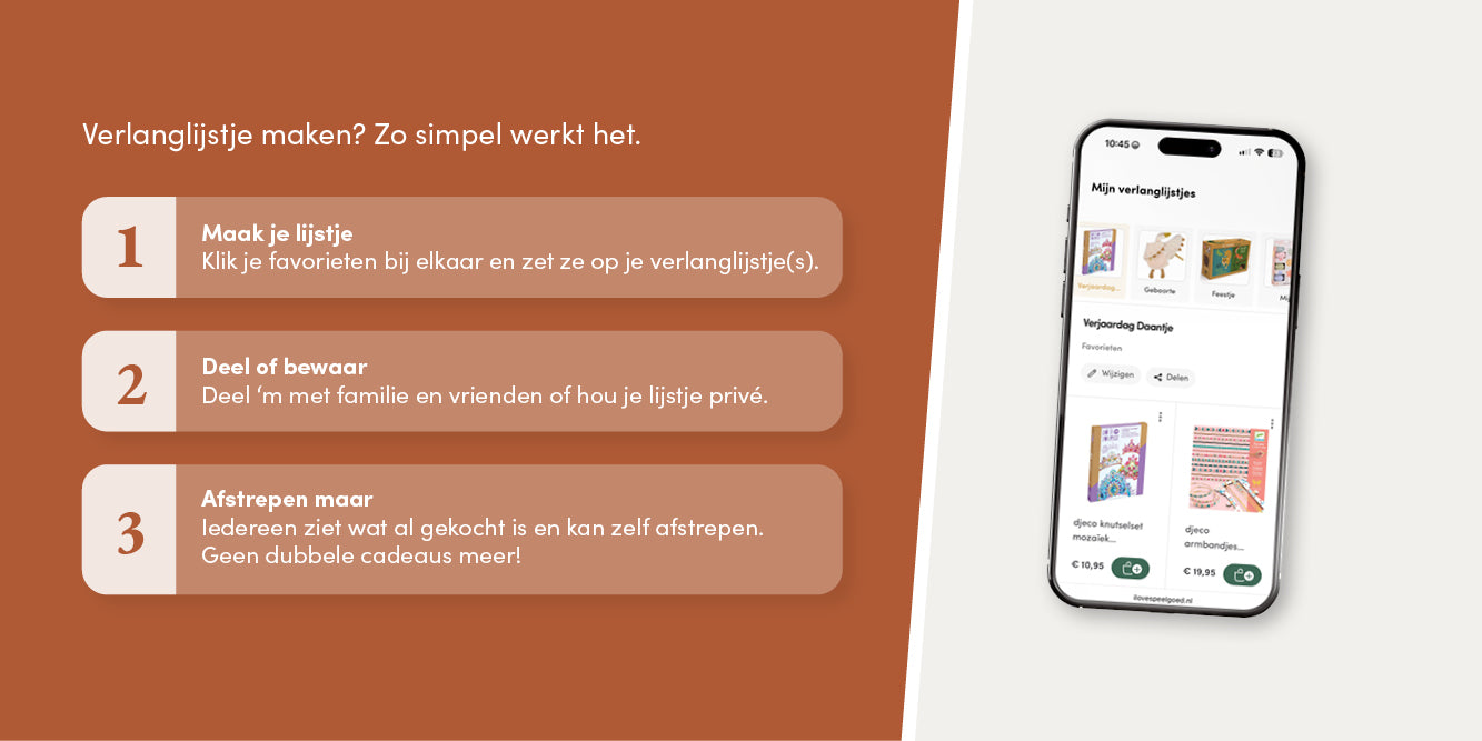 Op deze pagina lees je alles wat je moet weten over online verlanglijstje(s) maken. Hoe werkt het precies? Kan je meerdere lijstjes aanmaken? Met onze uitleg maak je in een paar klikken je verlanglijstje.