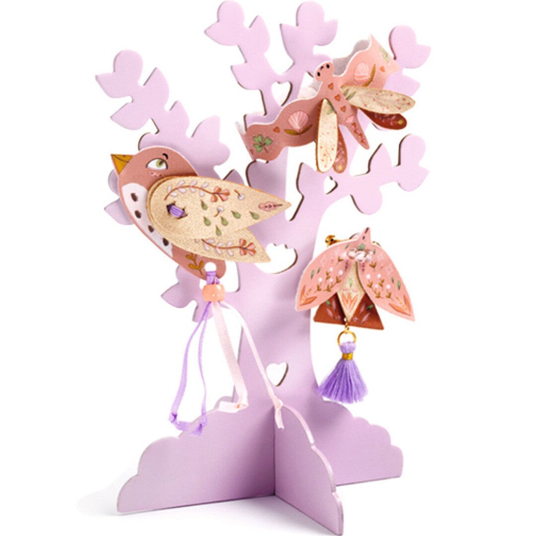 Maak vier betoverende sieraden van kunstleer met deze knutselset 'Jewels Kits Diy - Miss Rosefinch' van het Franse merk Djeco. De sieradenset bestaat uit een ketting, armband, broche en een haarsieraad. Ook heeft de set een mooie en functionele sieradenboom waar de zelfgemaakte sieraden aan opgehangen kunnen worden.