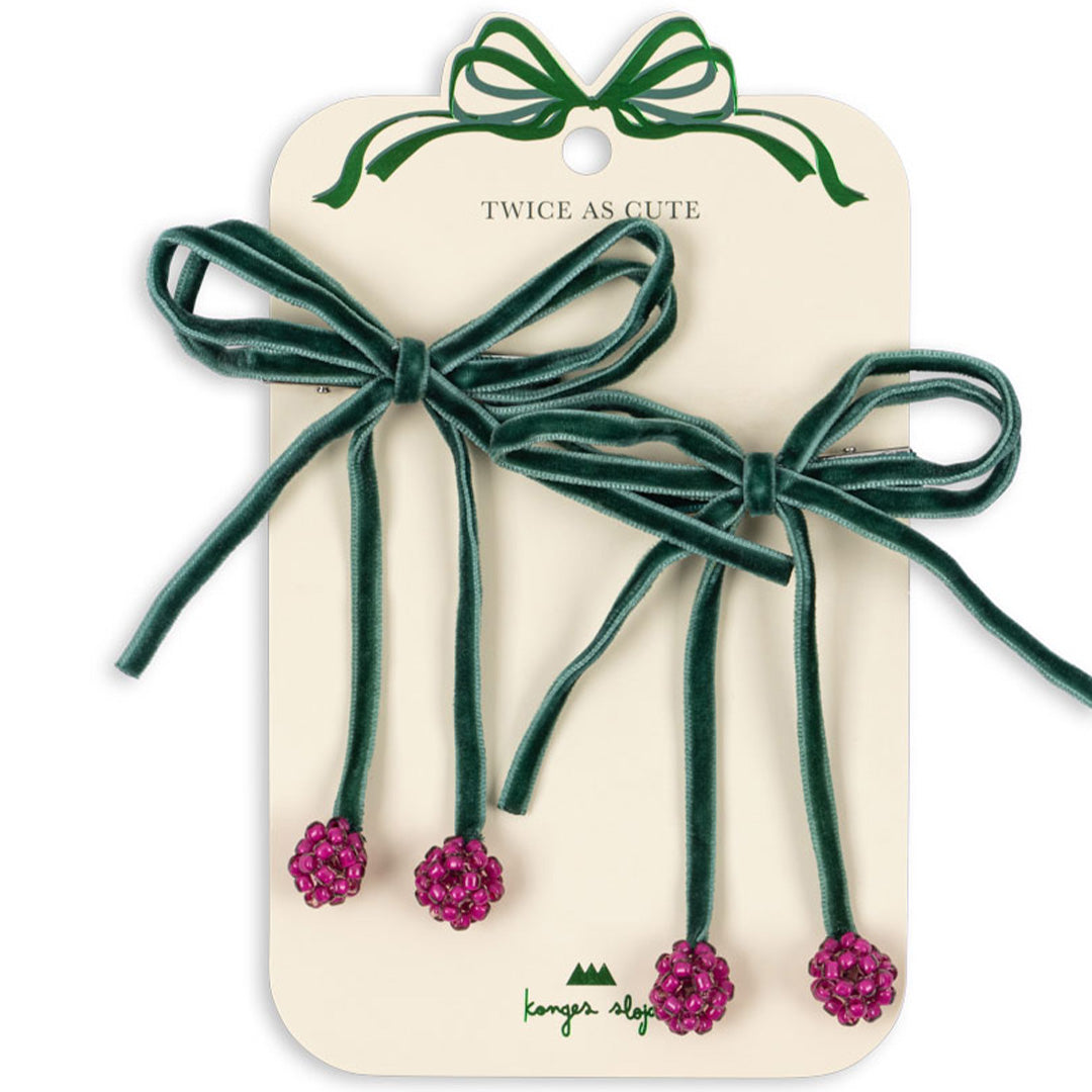 konges sløjd haarclips cherry bow - smoke pine - 2st