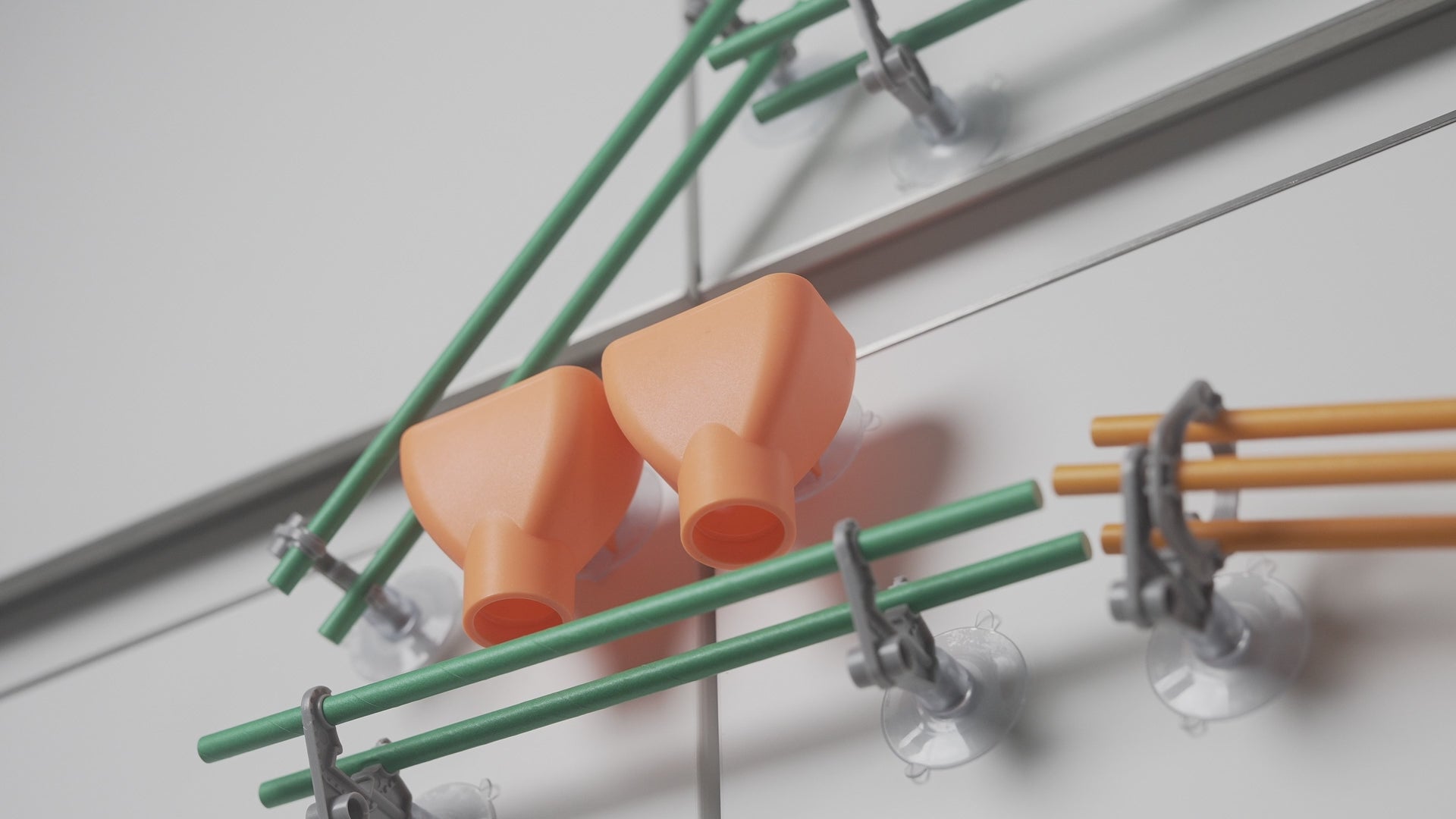 Plaats de funnels los in de baan of stapel er meerdere onder elkaar voor een extra spannend effect. Zo ontstaat een speels moment van vertragen, draaien en weer versnellen. Elke knikker kiest zijn eigen weg naar beneden, wat de knikkerbaan steeds net even anders maakt. Hang het element net onder een stukje baan en bevestig hem met de zuignap aan het gewenste oppervlak.