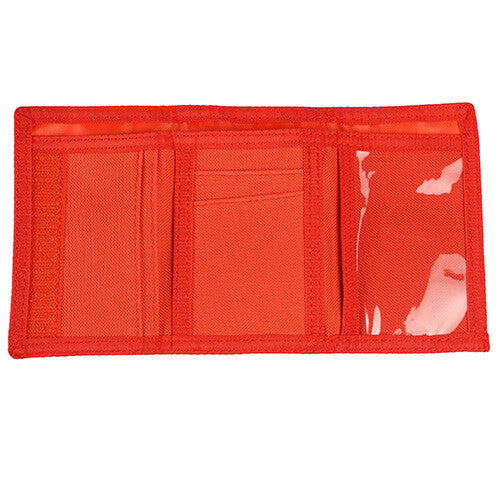 De portemonnee sluit met klittenband en heeft meerdere vakjes voor geld en pasjes. Aan de buitenkant zit een klein vakje met ritssluiting voor kleingeld.